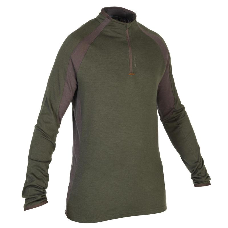 Футболка с длинными рукавами из шерсти овец-мериносов для охоты 900 Cotton Cloud Blue Jay Basics