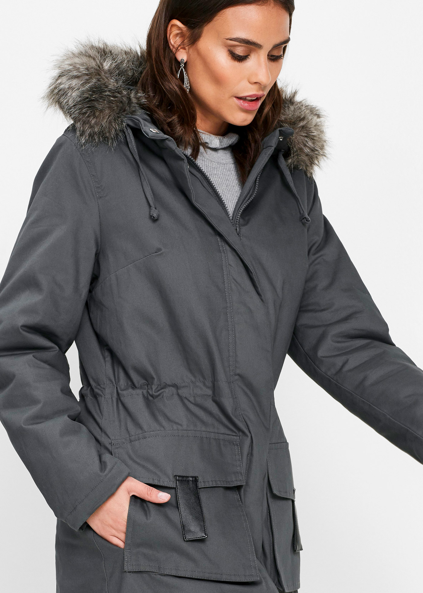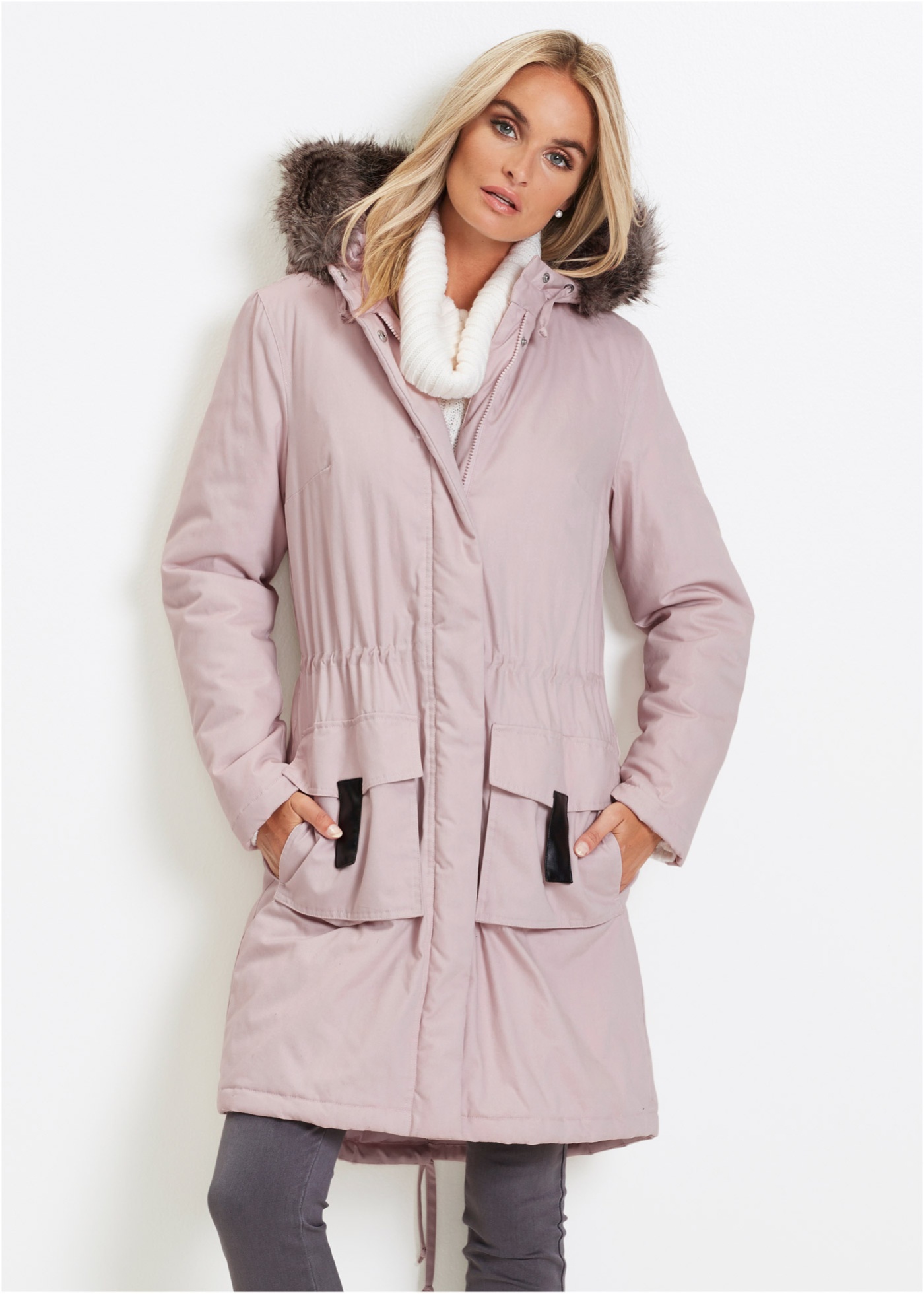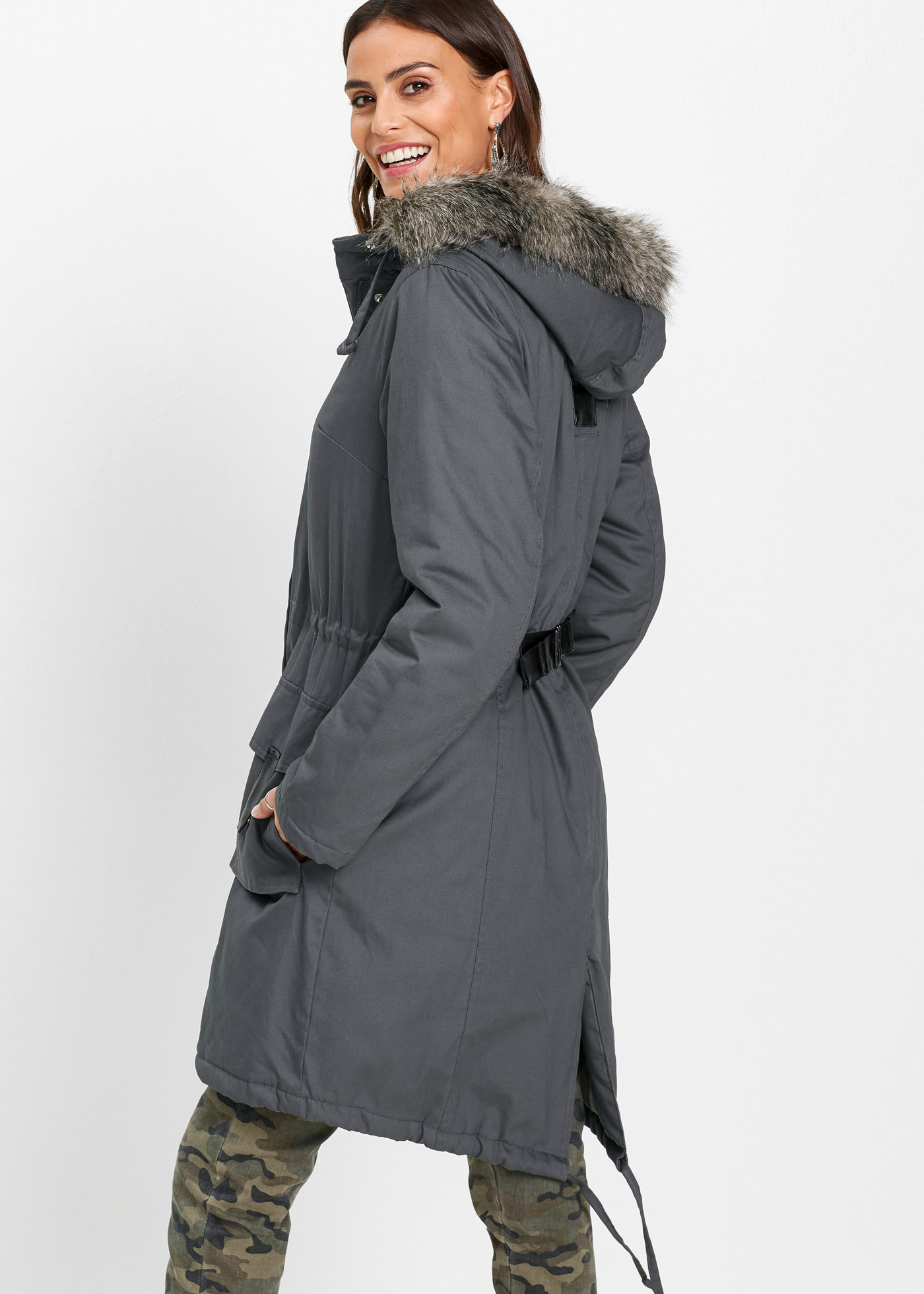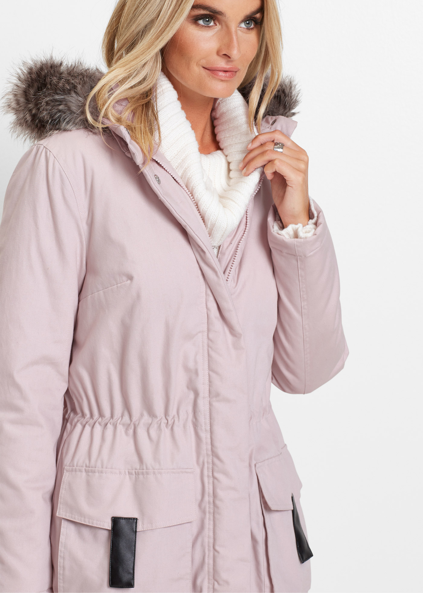 Верх: 100% хлопок, Подкладка: 100% полиэстер, Наполнитель: 100% полиэстер, Искусственный мех: 58% полиакрил, 42% Модакрил