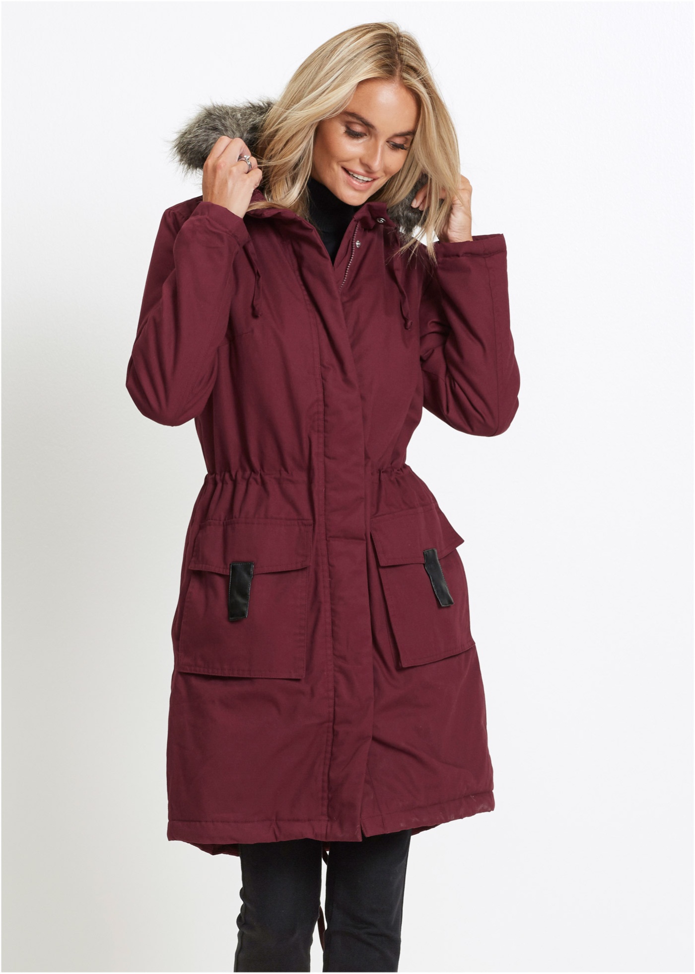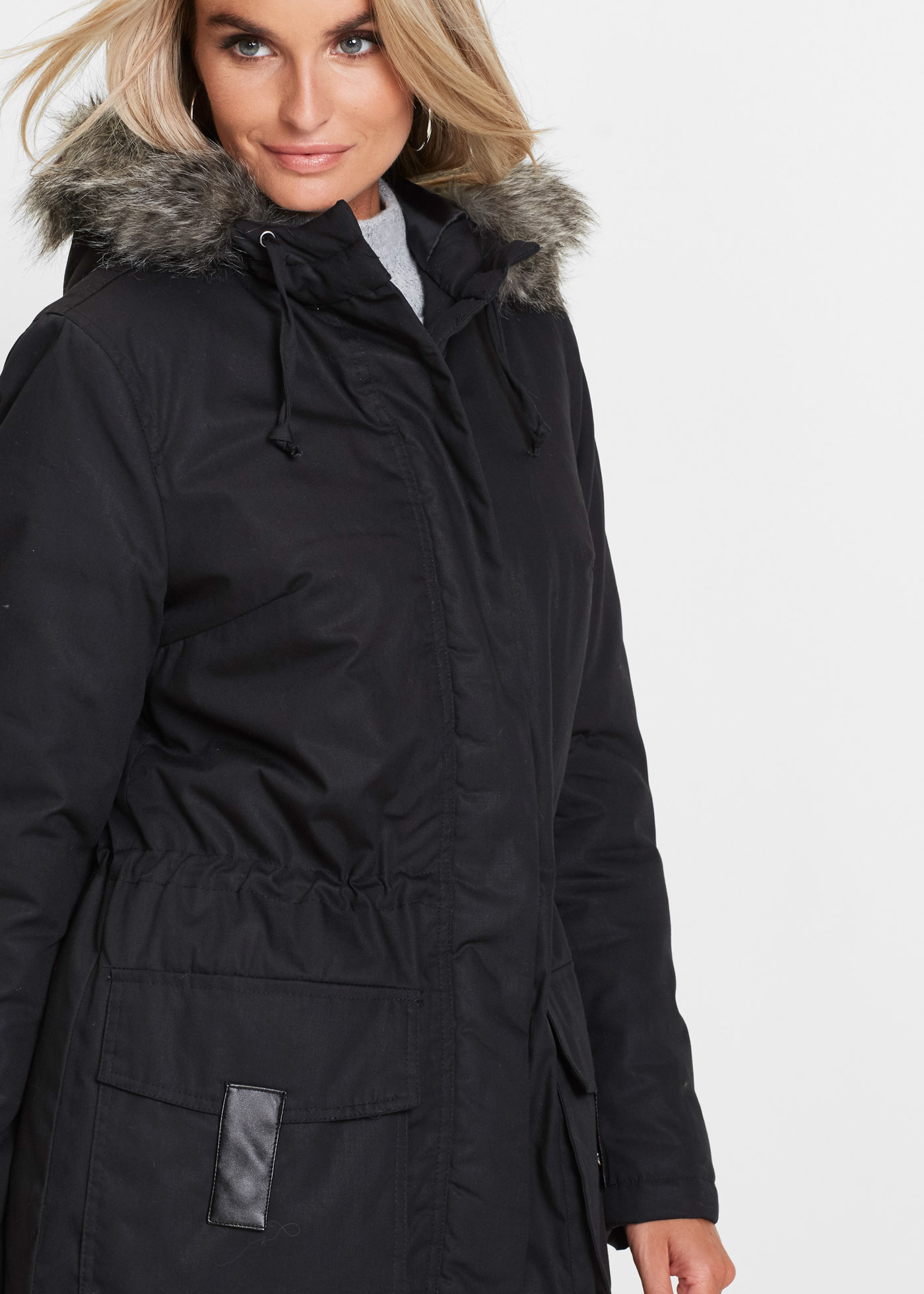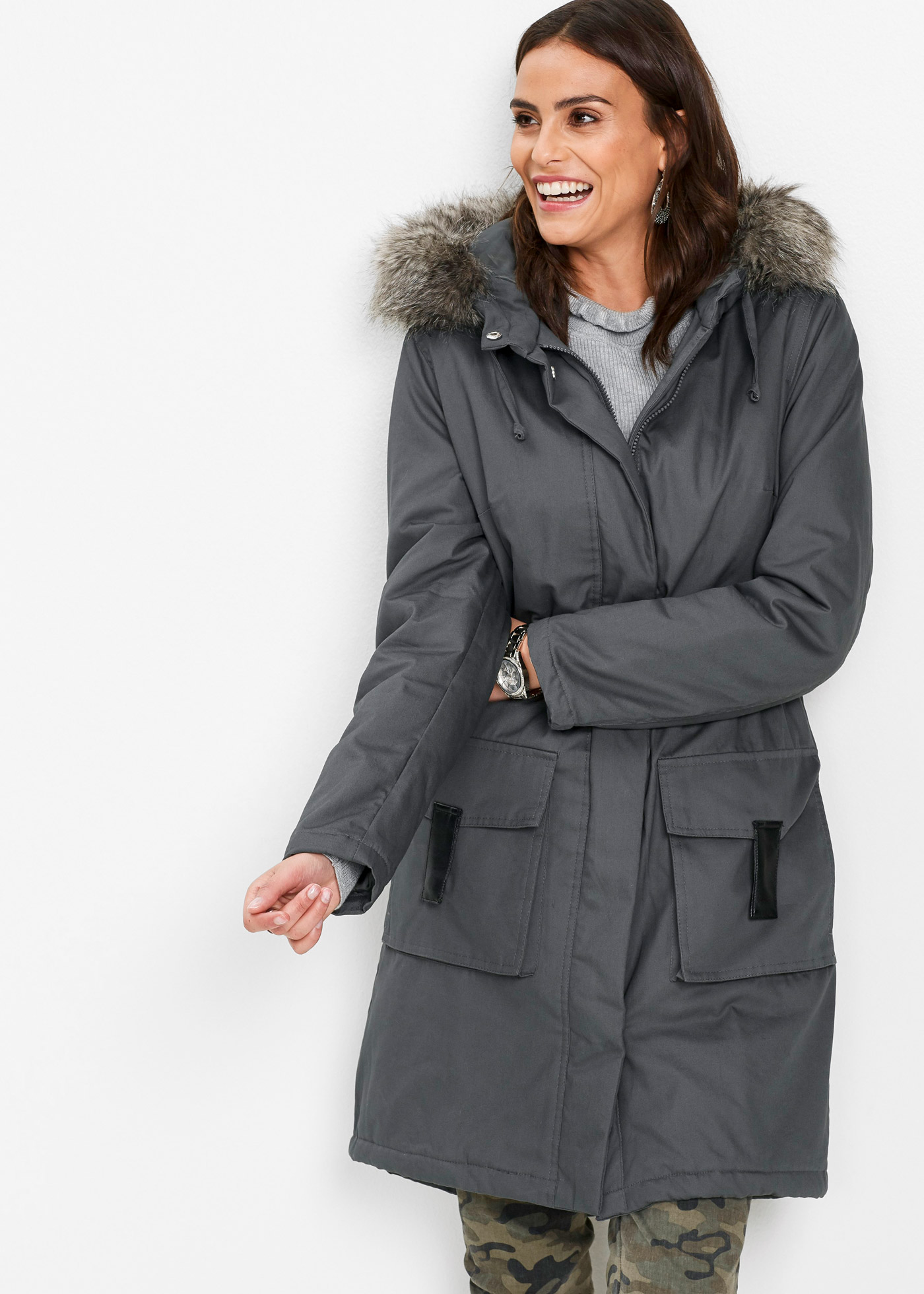 Верх: 100% хлопок, Подкладка: 100% полиэстер, Наполнитель: 100% полиэстер, Искусственный мех: 58% полиакрил, 42% Модакрил