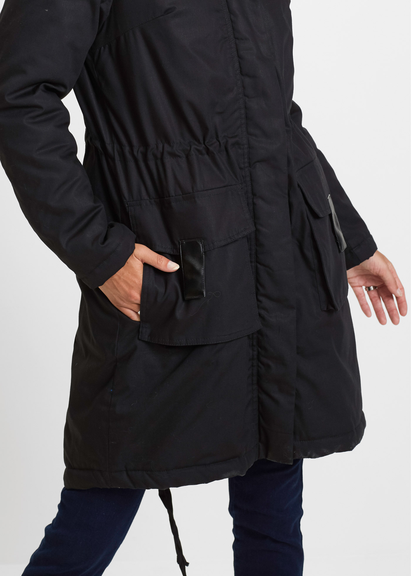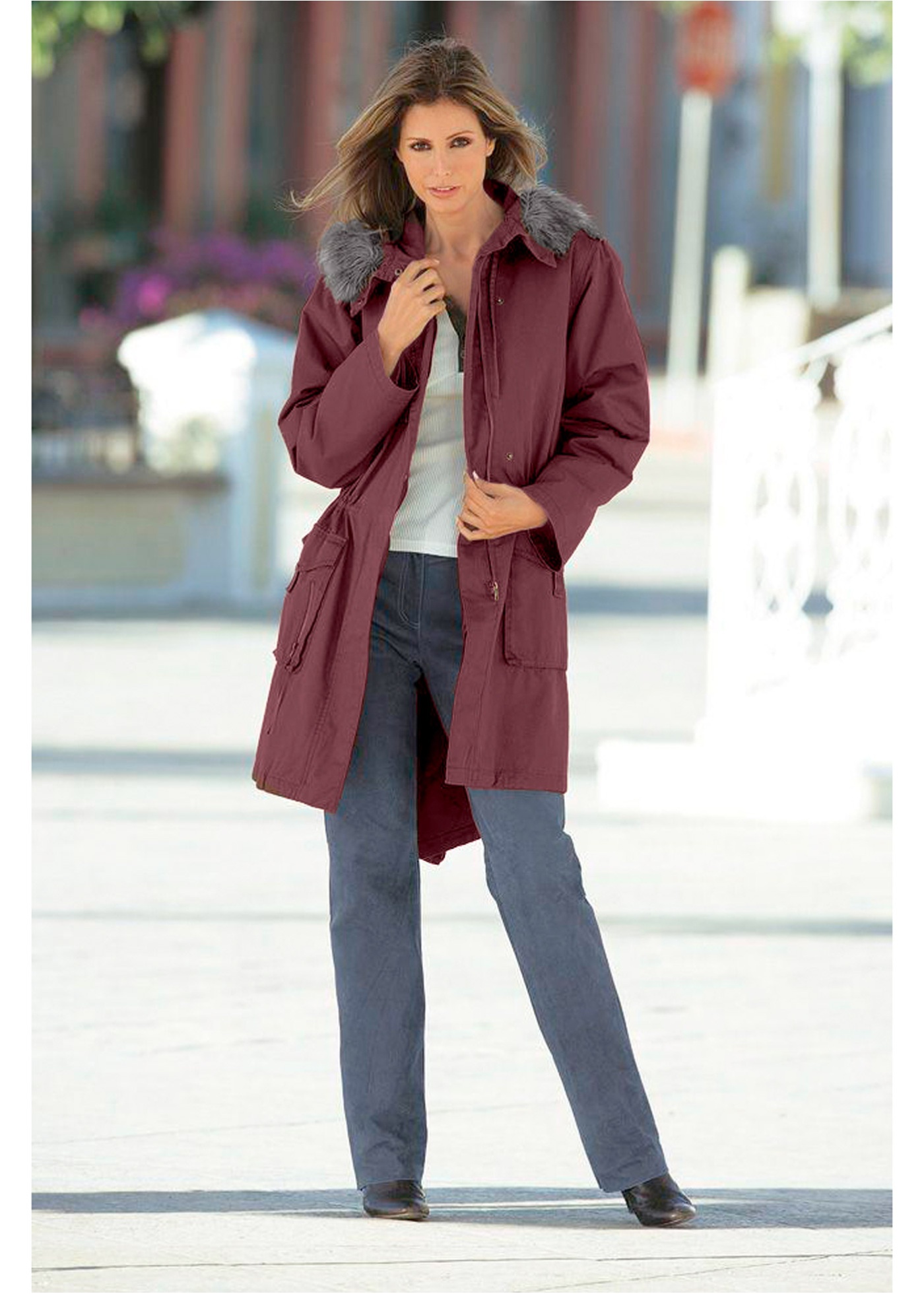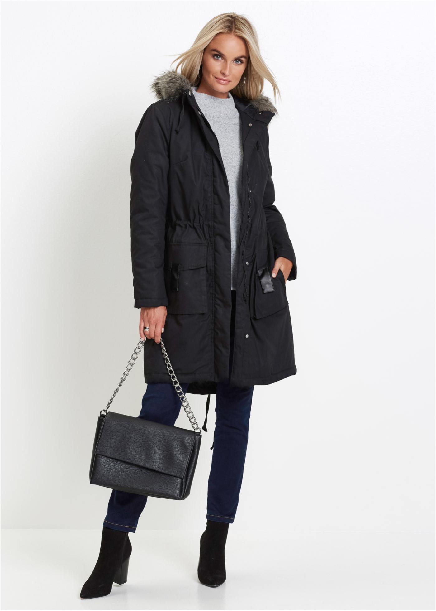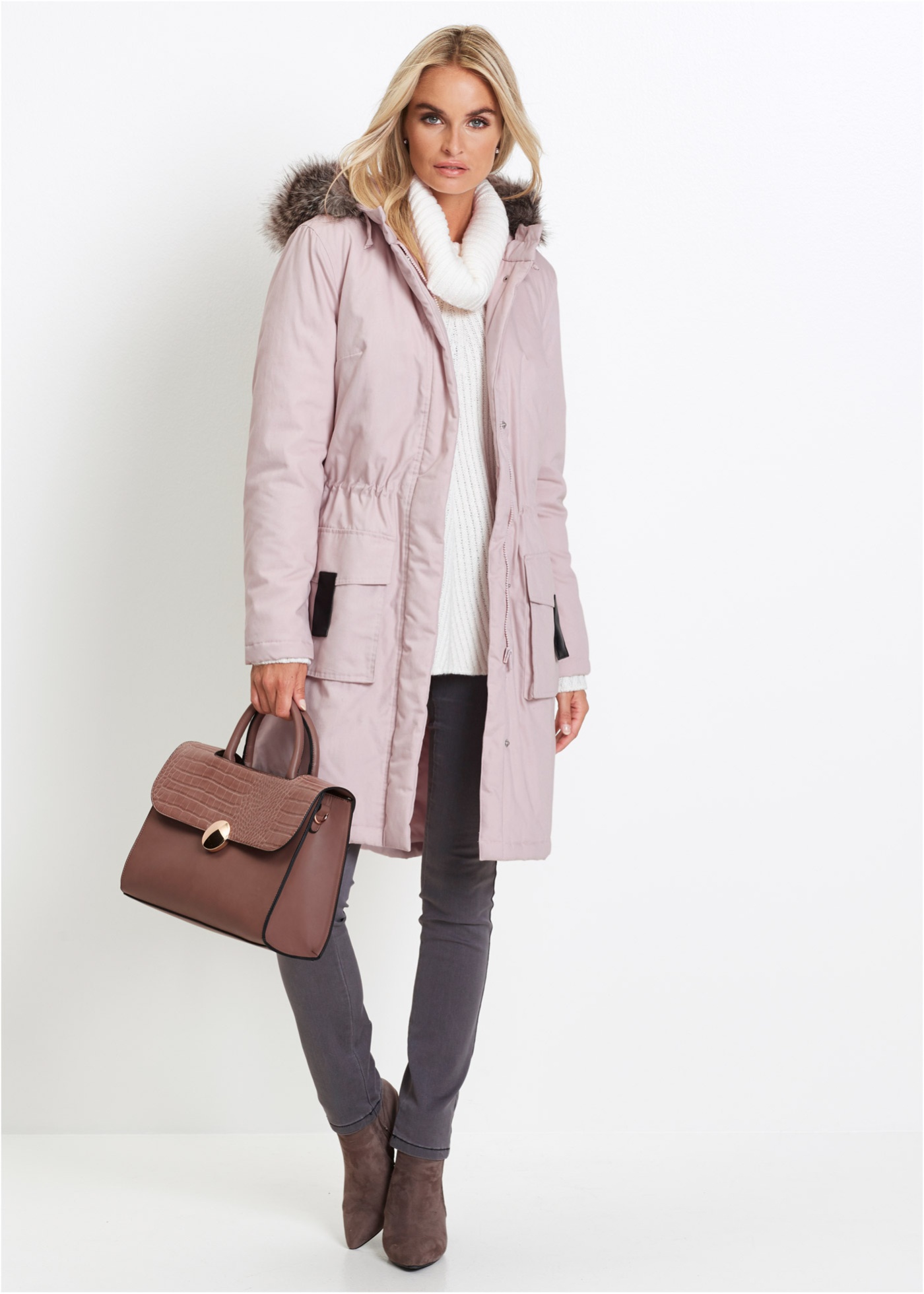Верх: 100% хлопок, Подкладка: 100% полиэстер, Наполнитель: 100% полиэстер, Искусственный мех: 58% полиакрил, 42% Модакрил